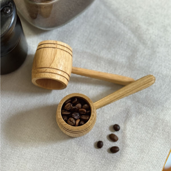 この樽をモチーフにした樽型のメジャースプーン。豆で約10gの計量が出来るサイズ。
